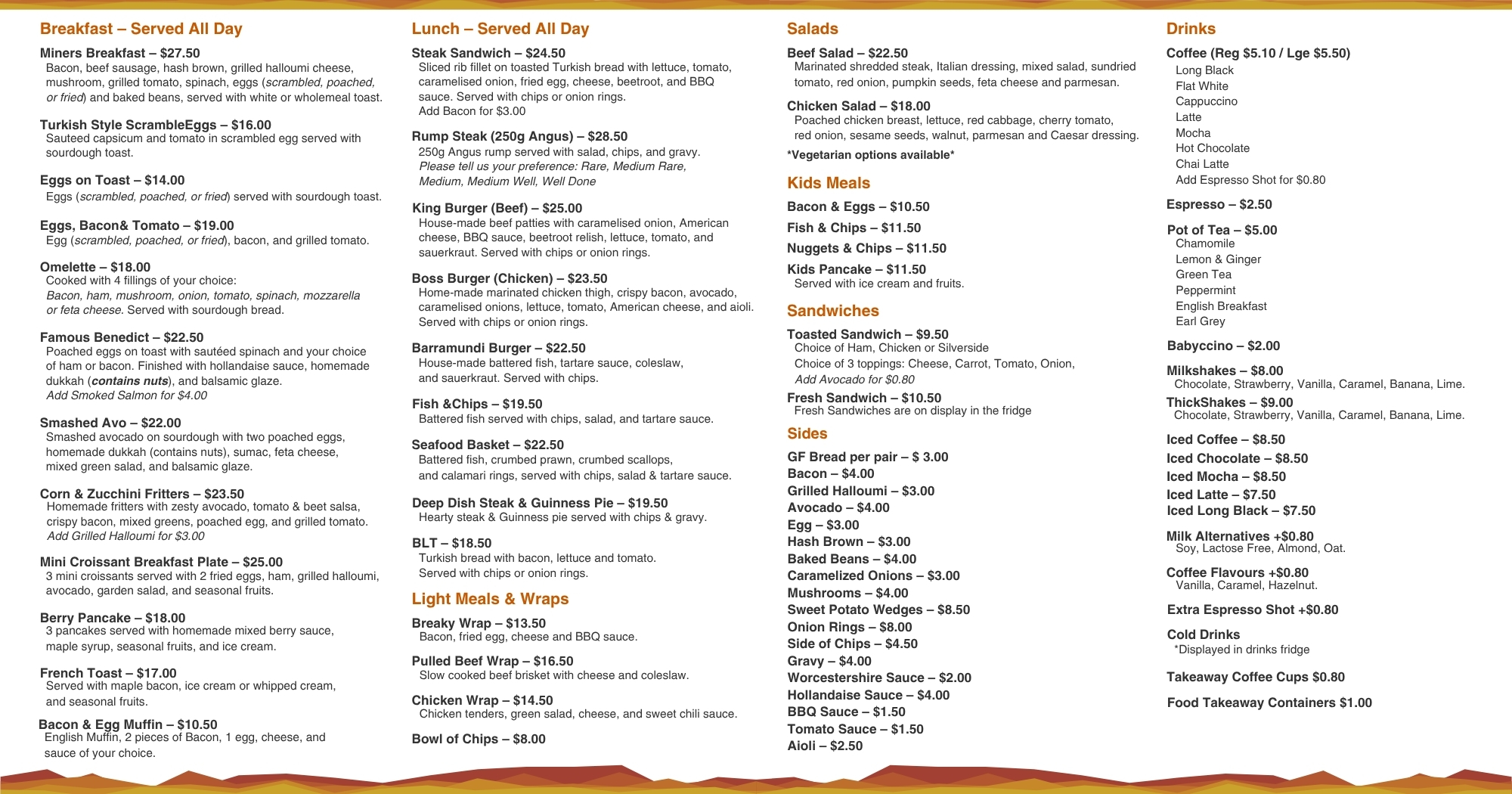 The Outback Café at Outback at Isa provides a range of fresh and homemade food to suit all tastes. Drop in today for a coffee, cake, a tasty breakfast or lunch.